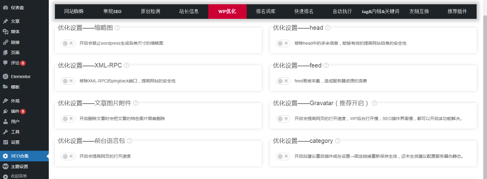 十二、wordpress程序优化(推荐使用SEO合集或网站百宝箱)